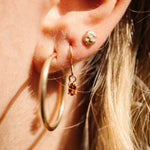 Layered here with our 10K Gold Brushed Hoop and our 10K Gold Nugget Studs