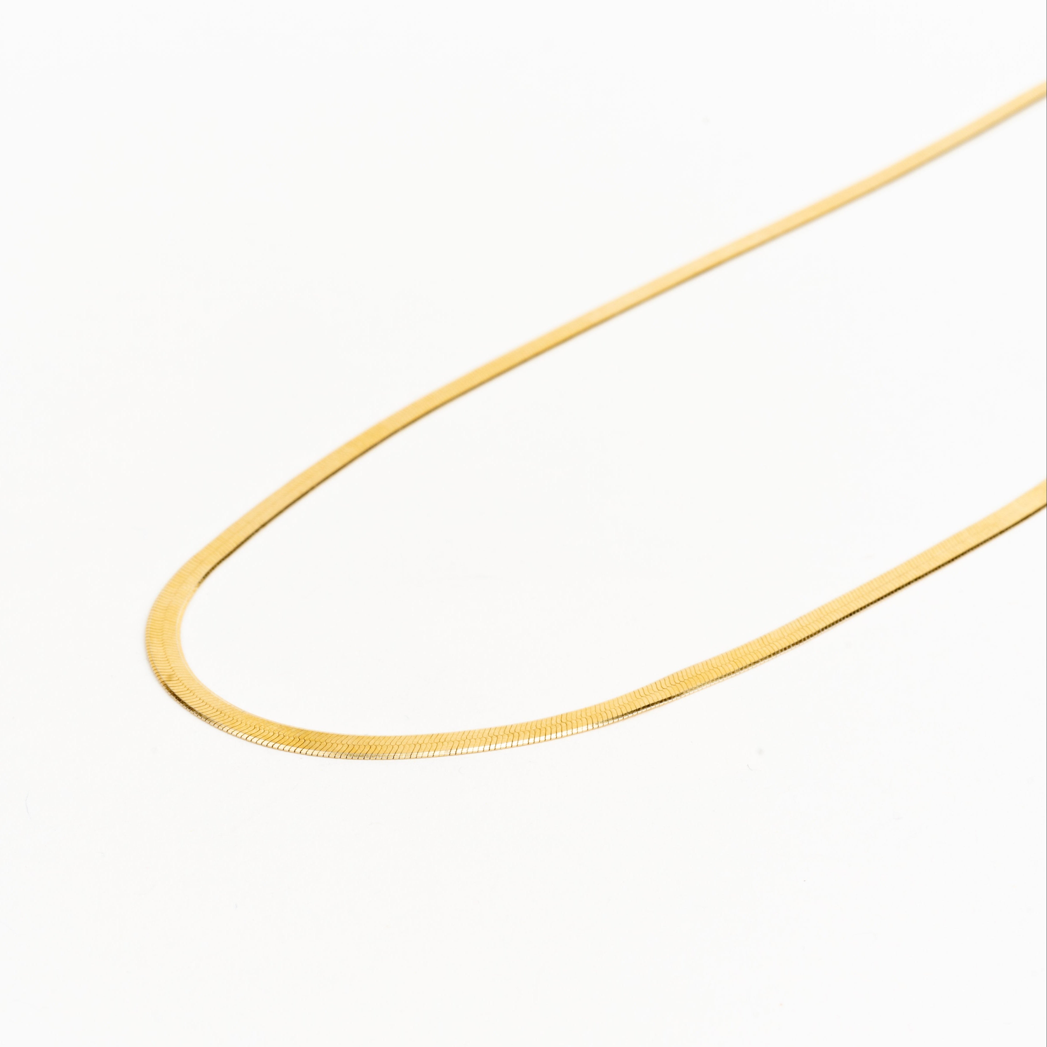 This 3mm herringbone chain has a smooth, fluid design that reflects light with every movement. Wear it alone or layer it effortlessly.