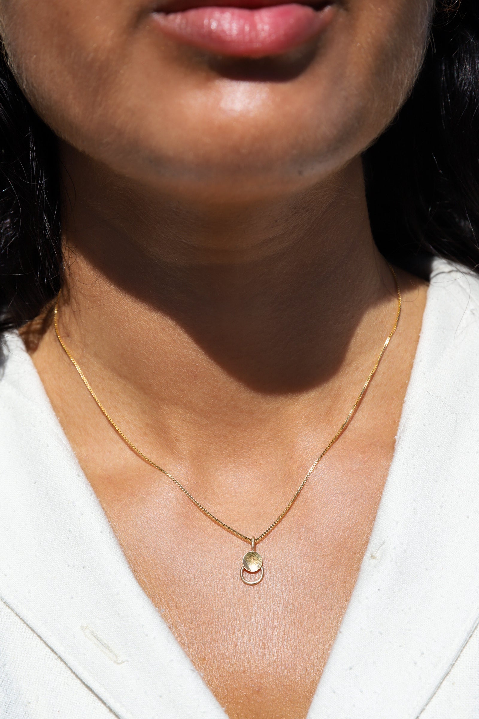 Summon the sun with our 10k Solid Gold Tess Necklace. Capturing the light, allow this stunning piece to bring you warmth and power.