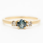 This delicate gold Montana Sapphire makes a one-of-a-kind, stunning engagement ring. Designed in our Tofino B.C. studio/store, The Factory.
