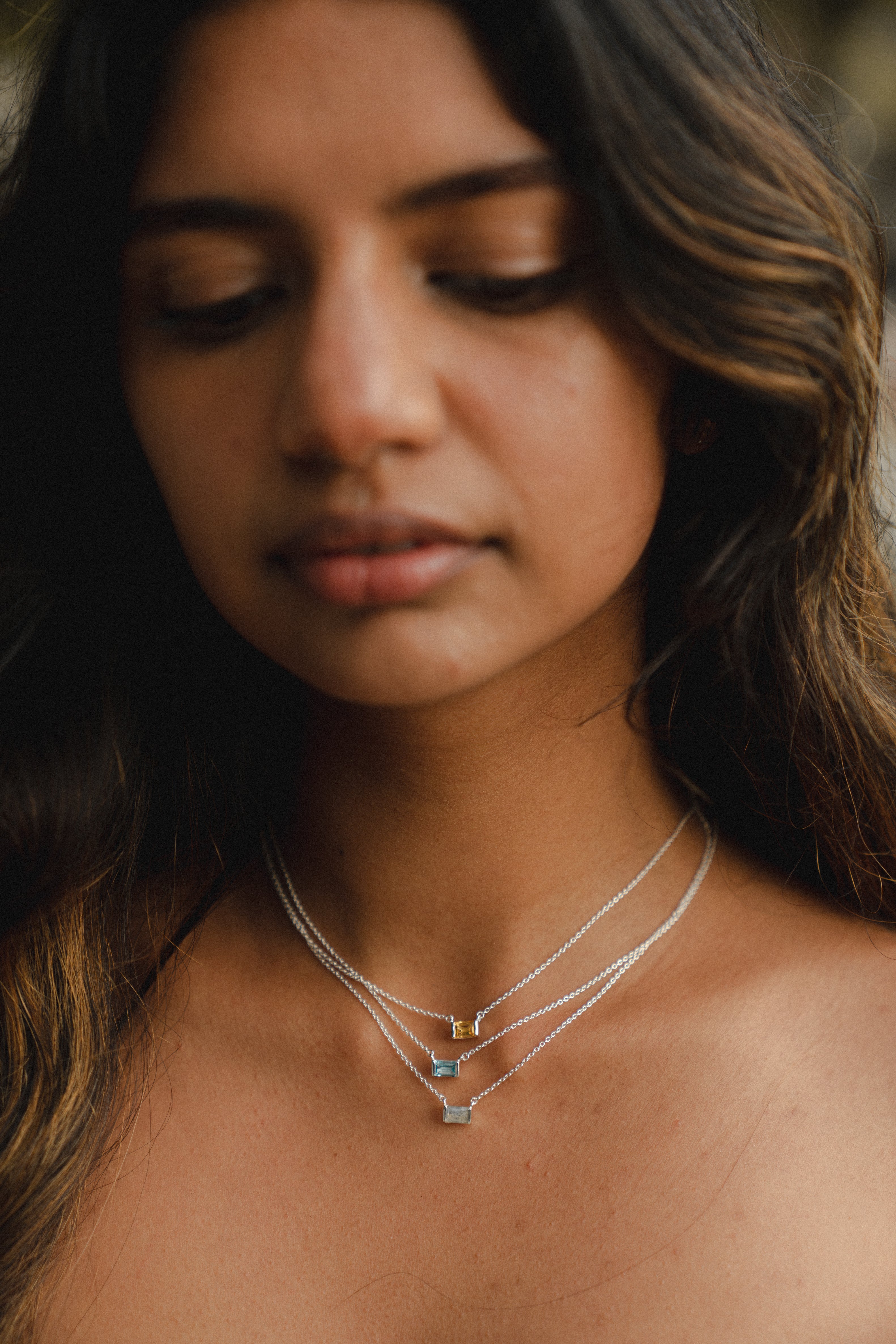 Choose from the vibrant Swiss Blue Topaz, the earthy tone of Citrine, or the iridescent magic of labradorite.