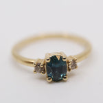 14K Oval Montana Sapphire Ring with Champagne Diamonds makes a one-of-a-kind, stunning engagement or celebration ring. Designed in Tofino, BC.