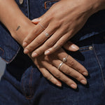 Worn here with our Sterling Silver Solstice Ring Green Tourmaline, Sterling Silver Moyeha Ring, Pairs well with our Sterling Silver Solstice Necklace And Sterling Silver Solstice Sleeper Earrings