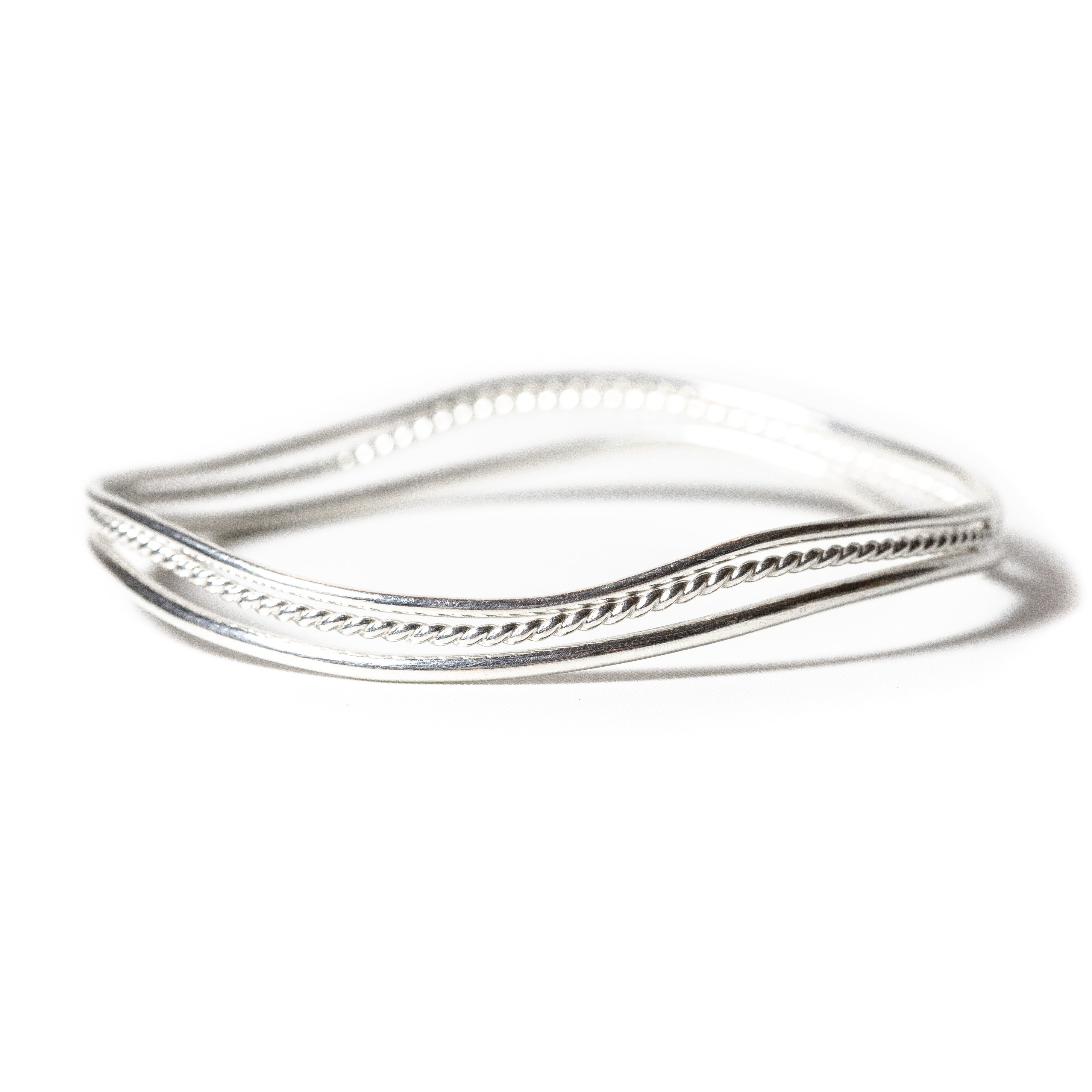 Our Tallie Bangle is hand forged from sterling silver into a delicate 'wave' shape, reminiscent of calmer days on our coast.