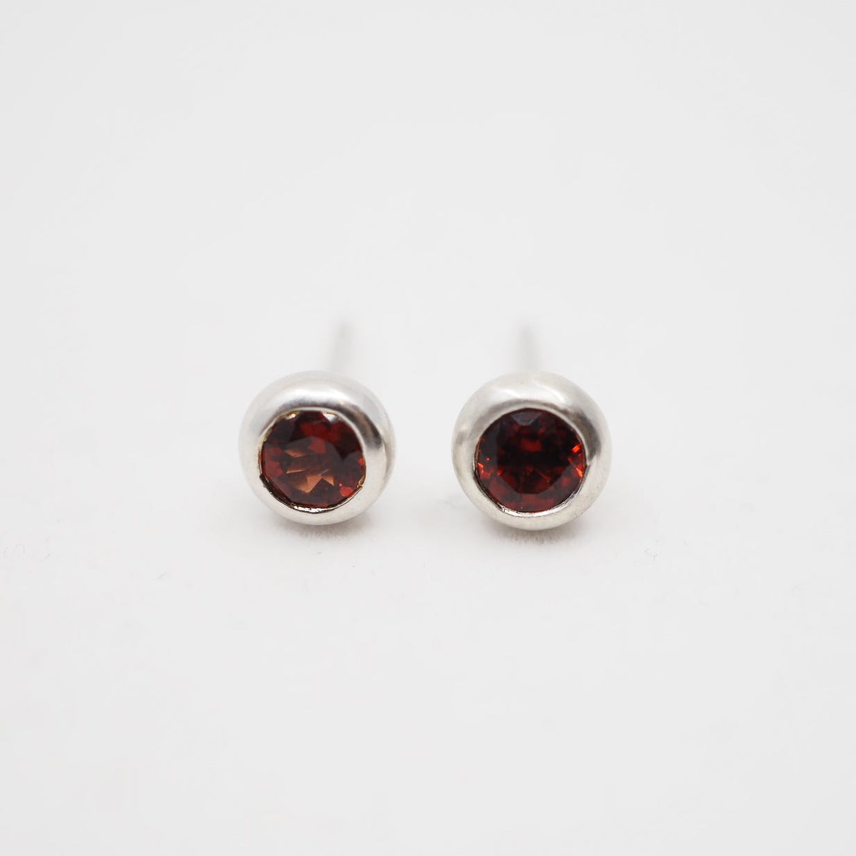 Sterling Silver Red Garnet Round Studs