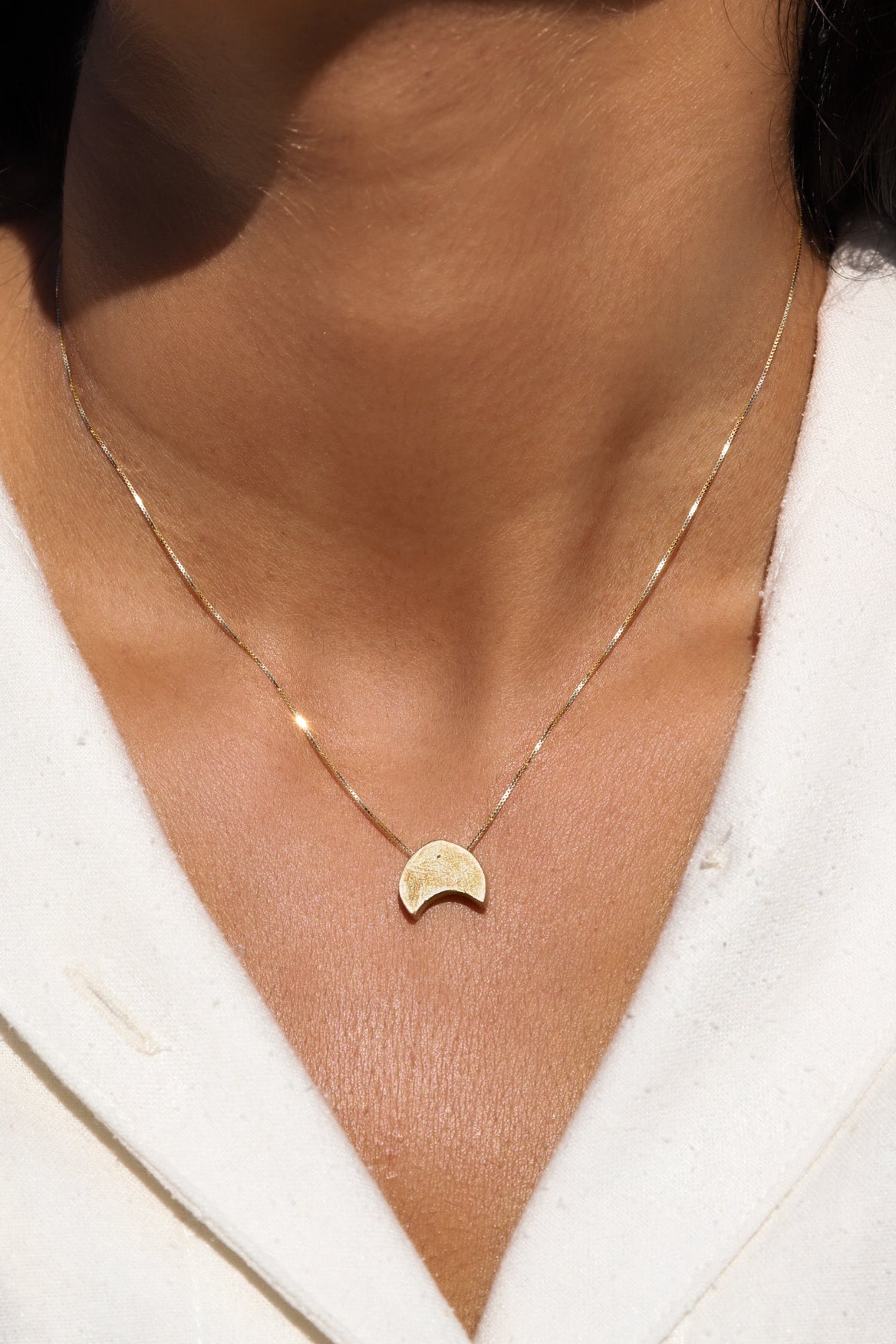 The La Luna Necklace is hand-carved in studio using the lost-wax casting process, inspired by the moon’s gentle pull and glowing presence. Crafted with intention, this piece carries a sense of celestial elegance and timeless beauty.