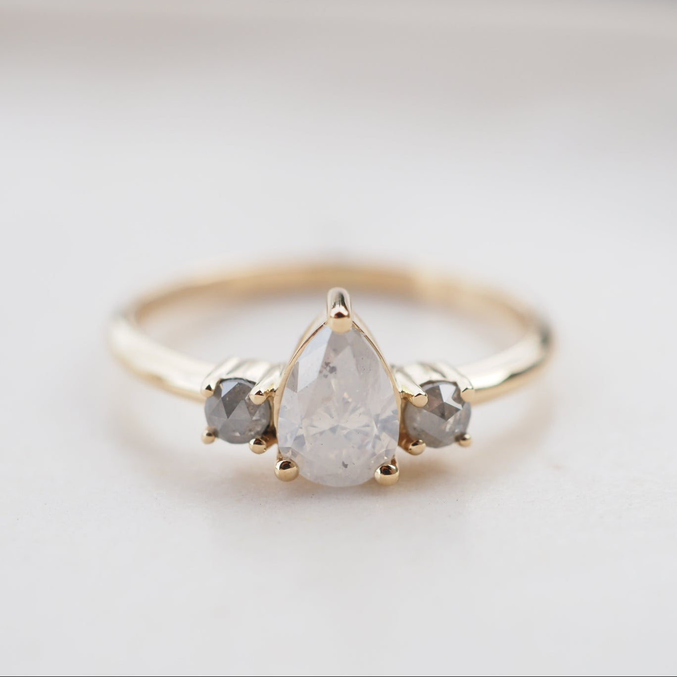 14k Gold Pear Shaped Crushed Ice Diamond with Salt & Pepper Diamonds
