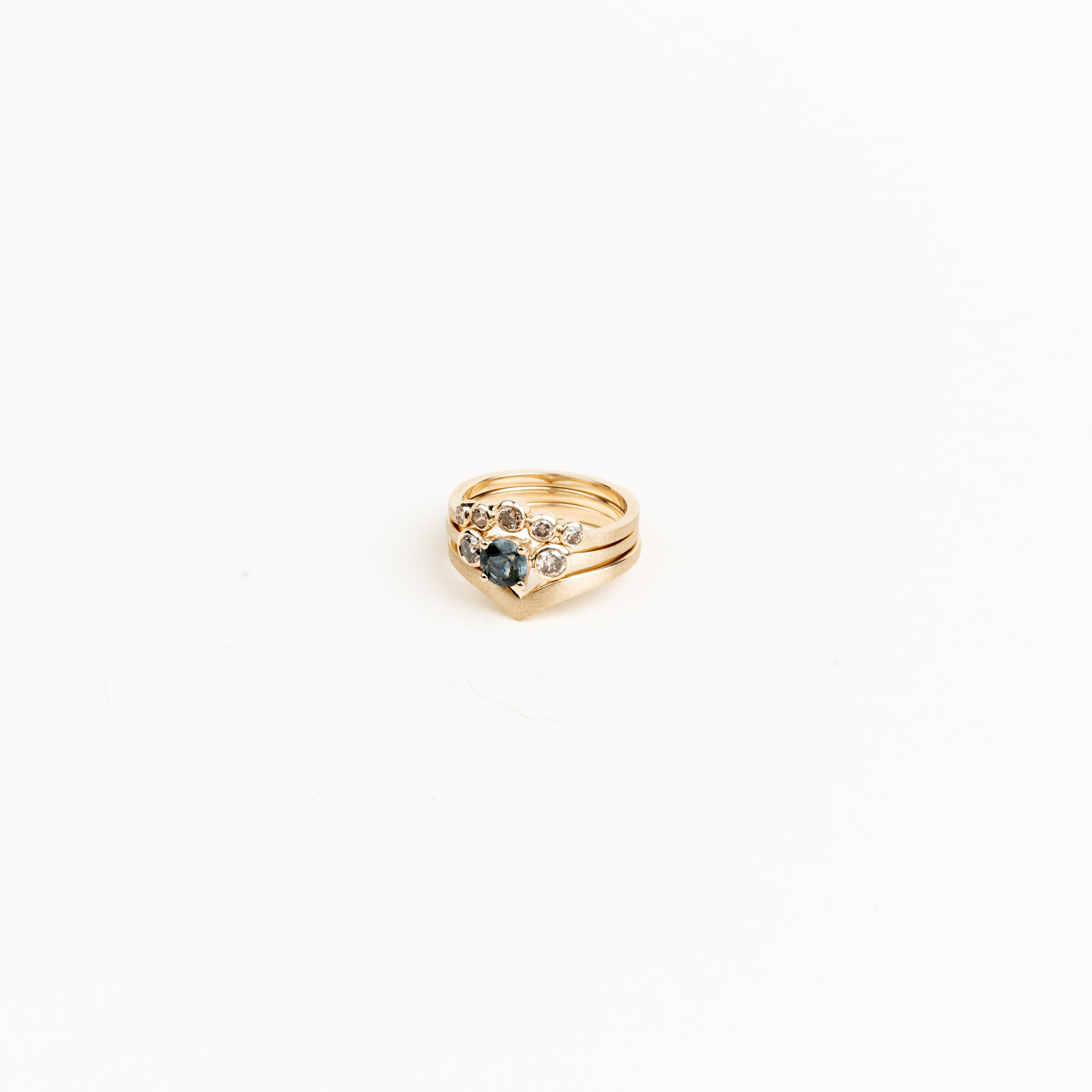 The 10K Gold Halo Ring Pairs perfectly on it's own or as a wedding band that snugs  perfect to your engagement ring.