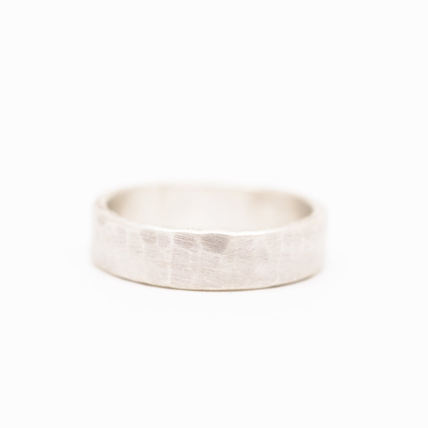 Our textured band is made from sterling silver and it features hammered details along the band. Sizes to fit everyone.