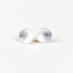Our Orbit studs are perfect earrings for everyday. Made from .925 sterling silver, these beauties won't bother even the most sensitive ears. The concave shape catches the light and shows off your choice of textured finish - Sand, Lace or Feather. Handmade for you in our Tofino B.C. Studio / Store.