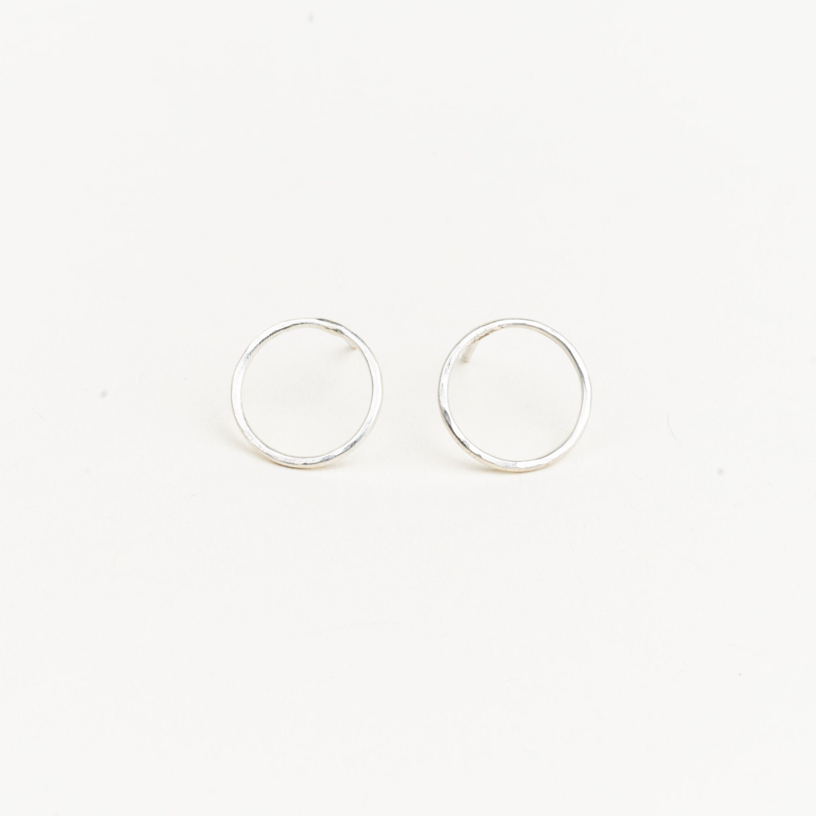 These comfortable everyday studs are made with Sterling Silver. They have a subtle hammered texture on the bottoms of each that catch the light just right.