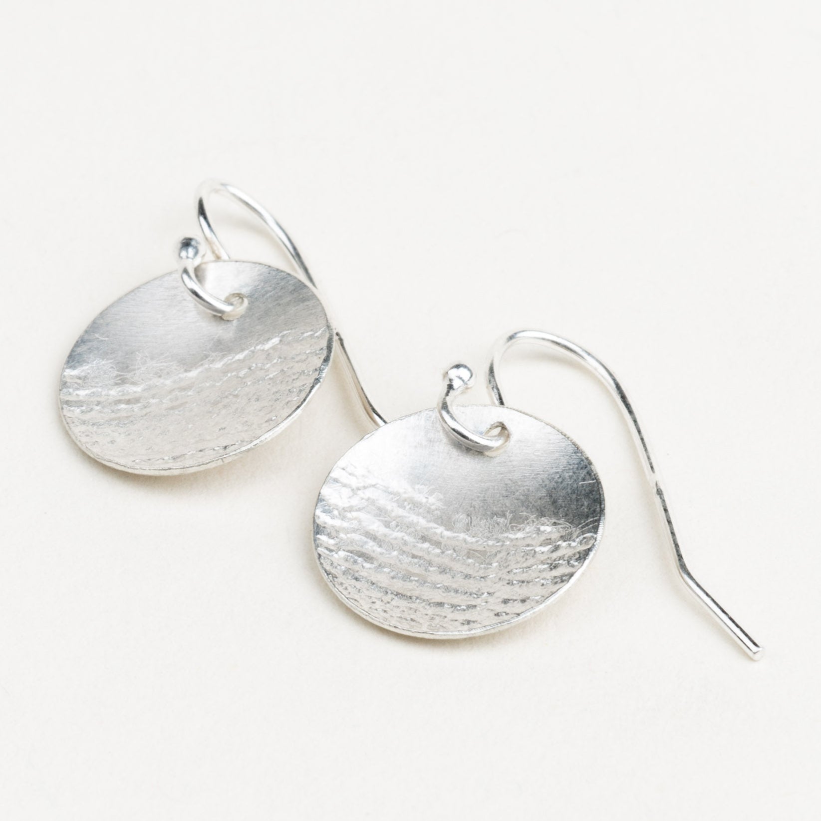 Our Orbit studs are perfect earrings for everyday. Made from .925 Sterling silver, these beauties won't bother even the most sensitive ears. The concave shape catches the light and shows off your choice of textured finish - Sand, Lace or Feather. Handmade for you in our Tofino B.C. Studio / Store