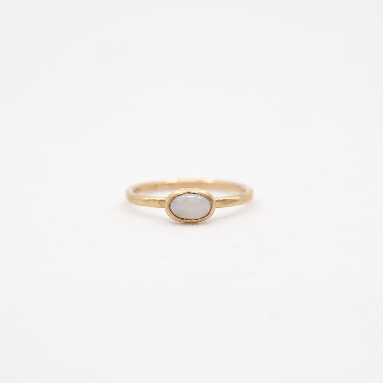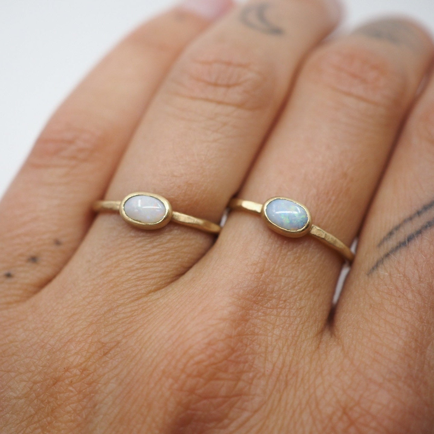 Our oval opal stacking ring is just as beautiful solo as it is paired with another. The ethically sourced opal is handpicked by Lisa and set on a 10k recycled gold band.