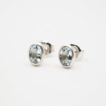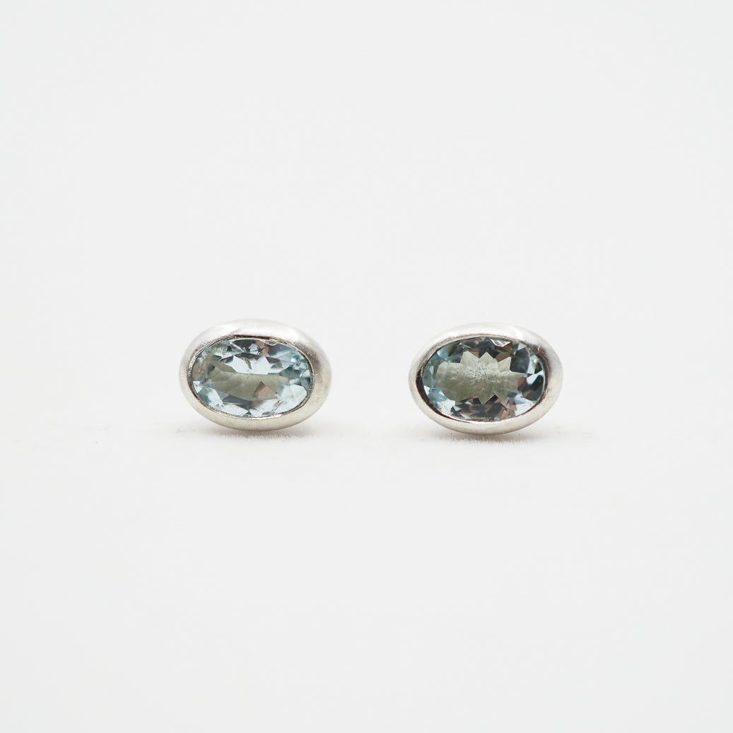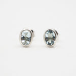 These stunning light blue Aquamarine Earrings are nestled in .925 grade Sterling Silver. The smooth oval shape pays homage to the element of water, offering a soft, playful silhouette.