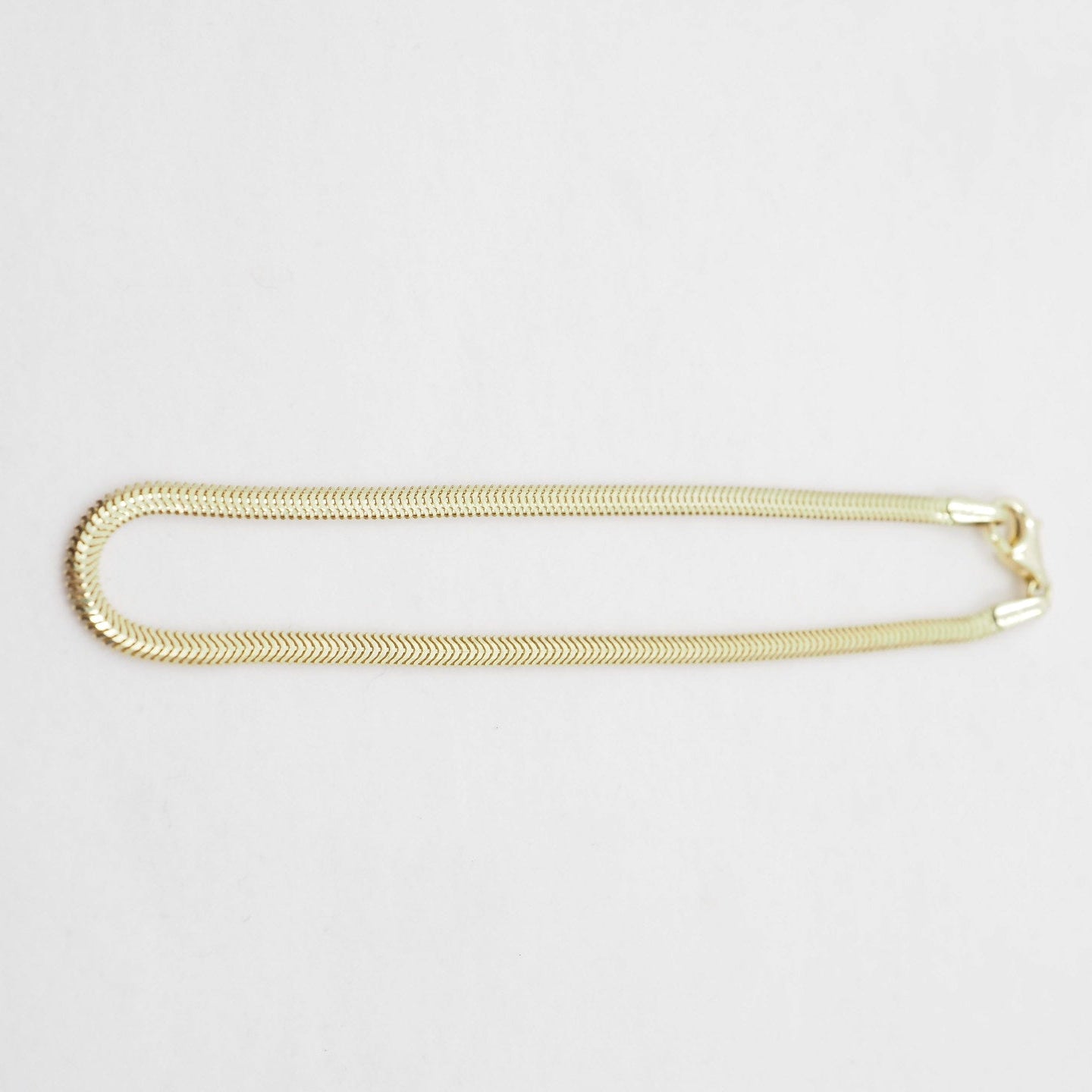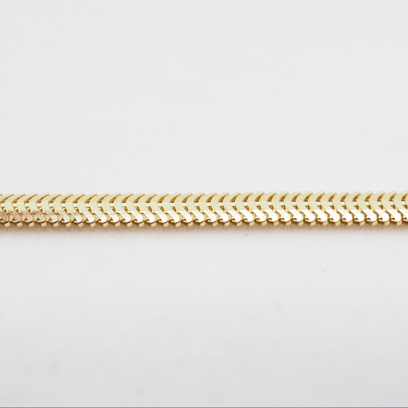 Gold snake chain on a light gray background