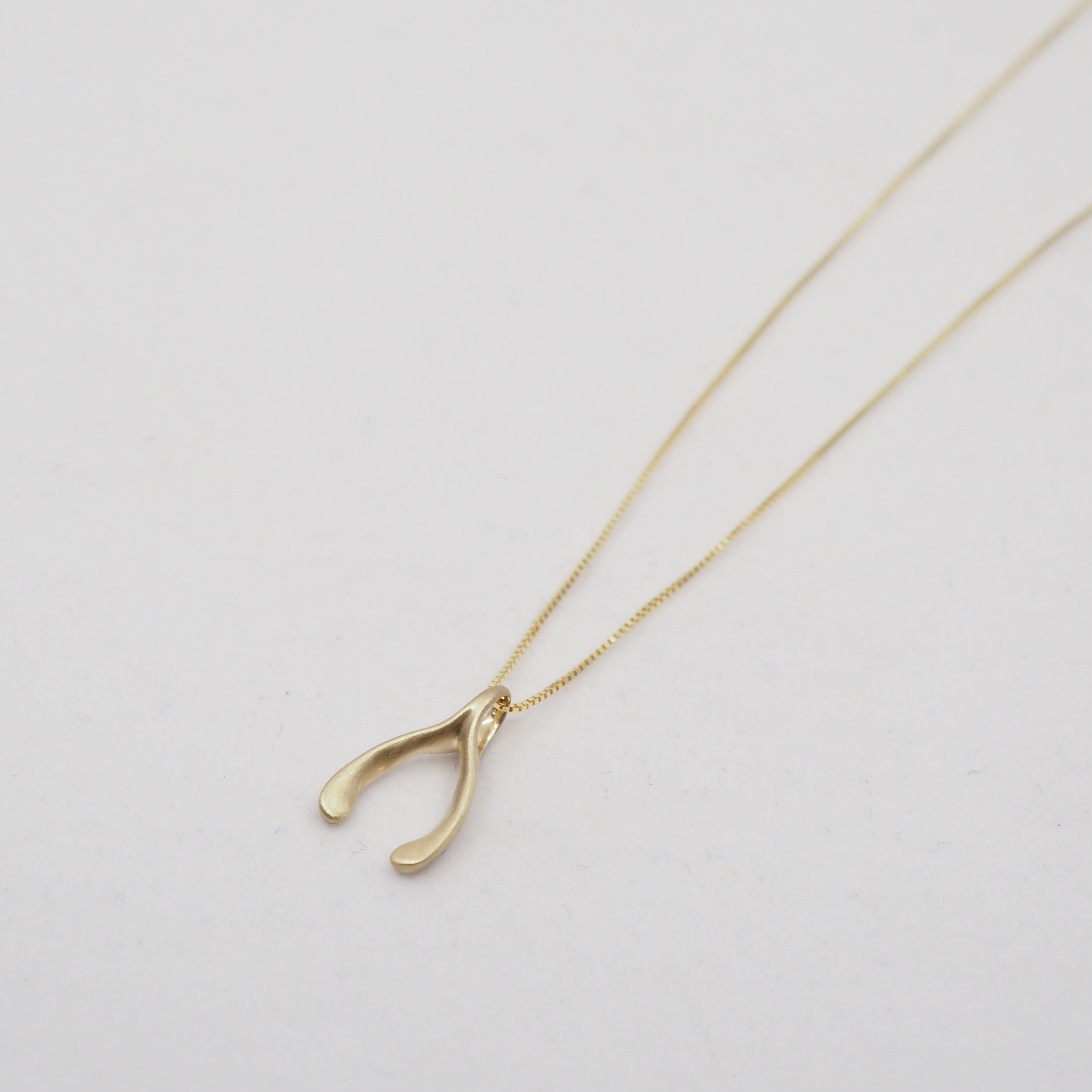 Add a little good luck to your everyday, our 10K gold wishbone necklace can go with you everywhere.