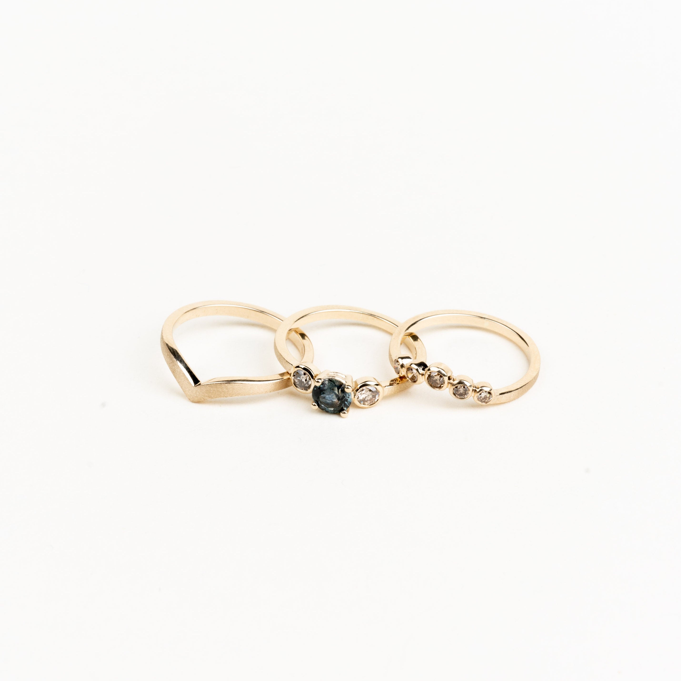 Our 10k Gold Halo Ring wears beautifully on its own or pairs perfectly with an engagement ring for a unique wedding band. Framing your engagement ring's centrepiece with subtle geometric depth.