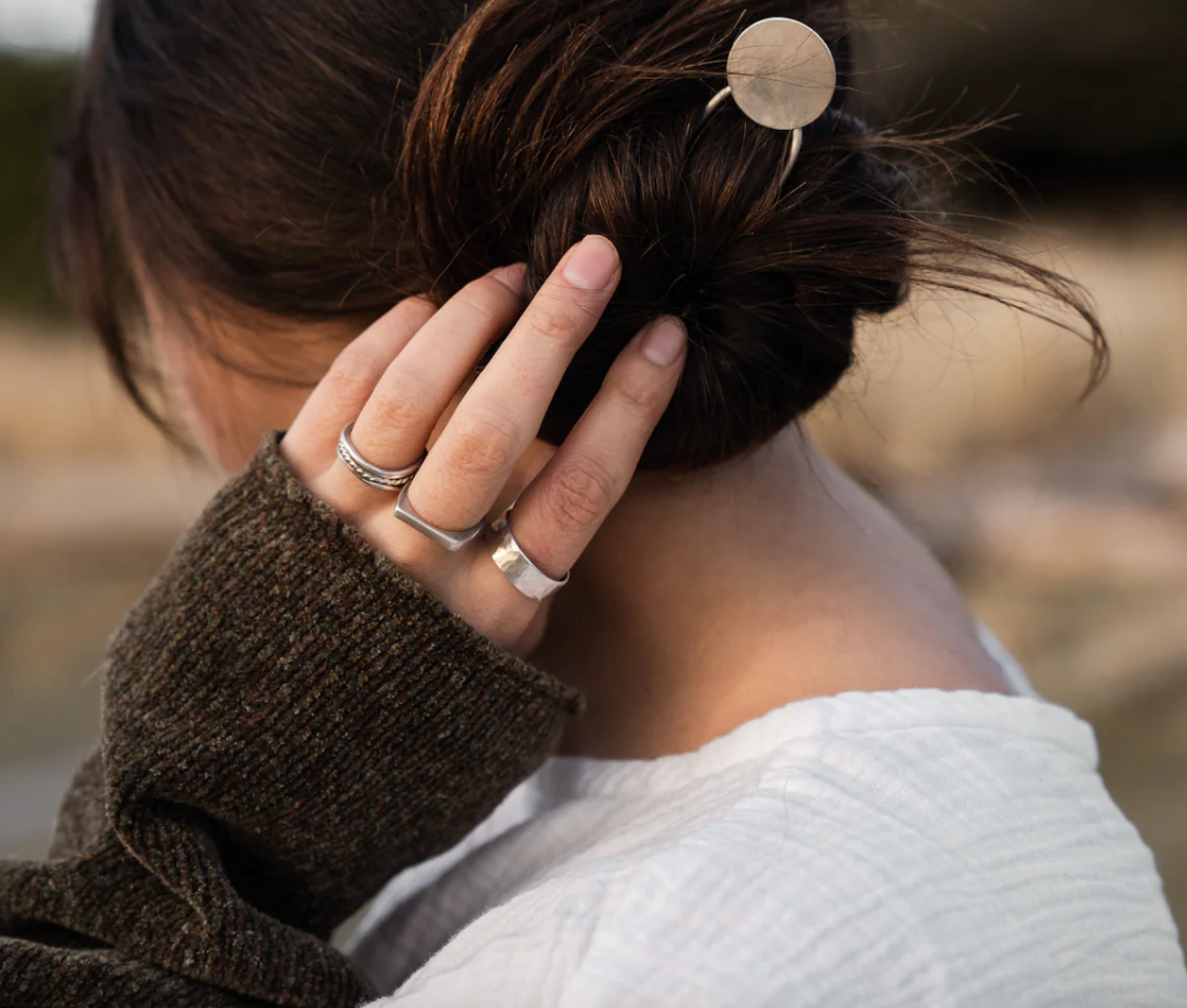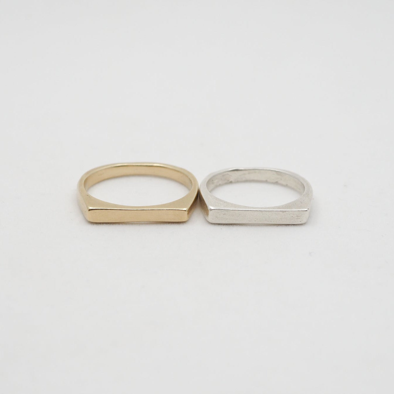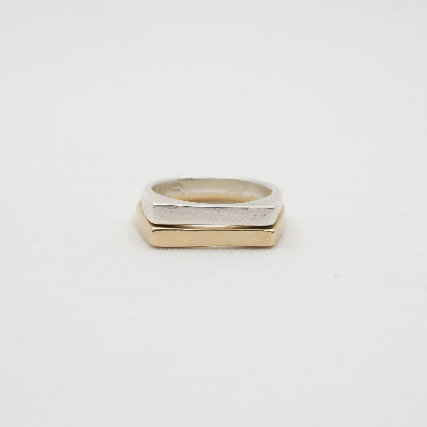 Square Rain Rings are the perfect rings to stack together. Lying flat together, they create a subtle duotone contrast that makes a beautifully unique stack.